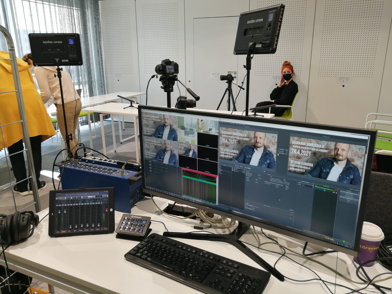 • ohjaaja, joka valvoo lähetystä etänä ja hoitaa livelähetyksen käynnistyksen & lopettamisen